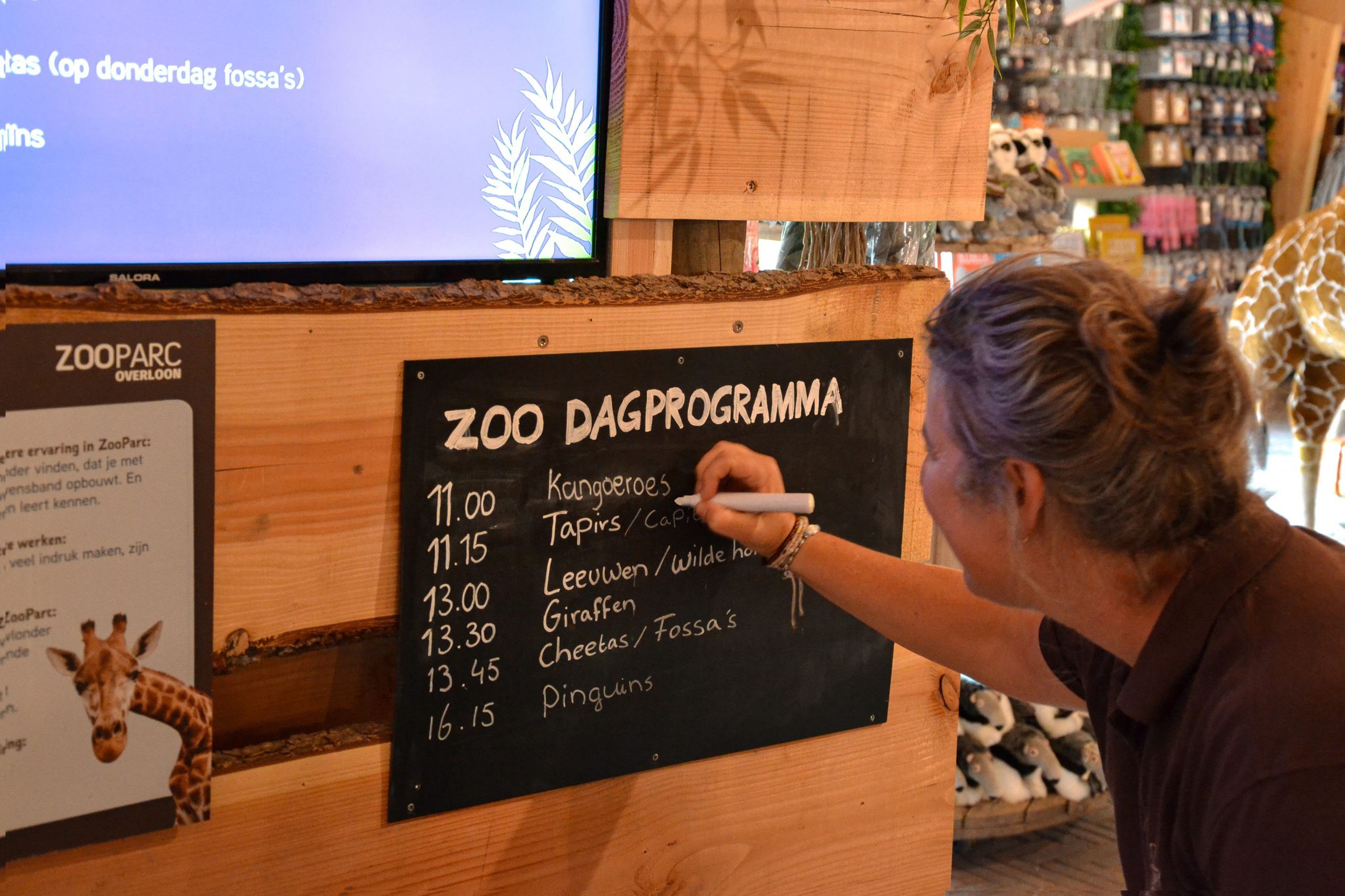 Marjon arbeitet bereits seit 18 Jahren im ZooParc! Sie ist 1 der 3 Mitarbeiter im Gästeservice. Außerdem gibt es etwa 6 Mitarbeiter, die sich um den großen Strom der ankommenden Besucher kümmern. Die Arbeit von Marjon umfasst noch ein bisschen mehr!