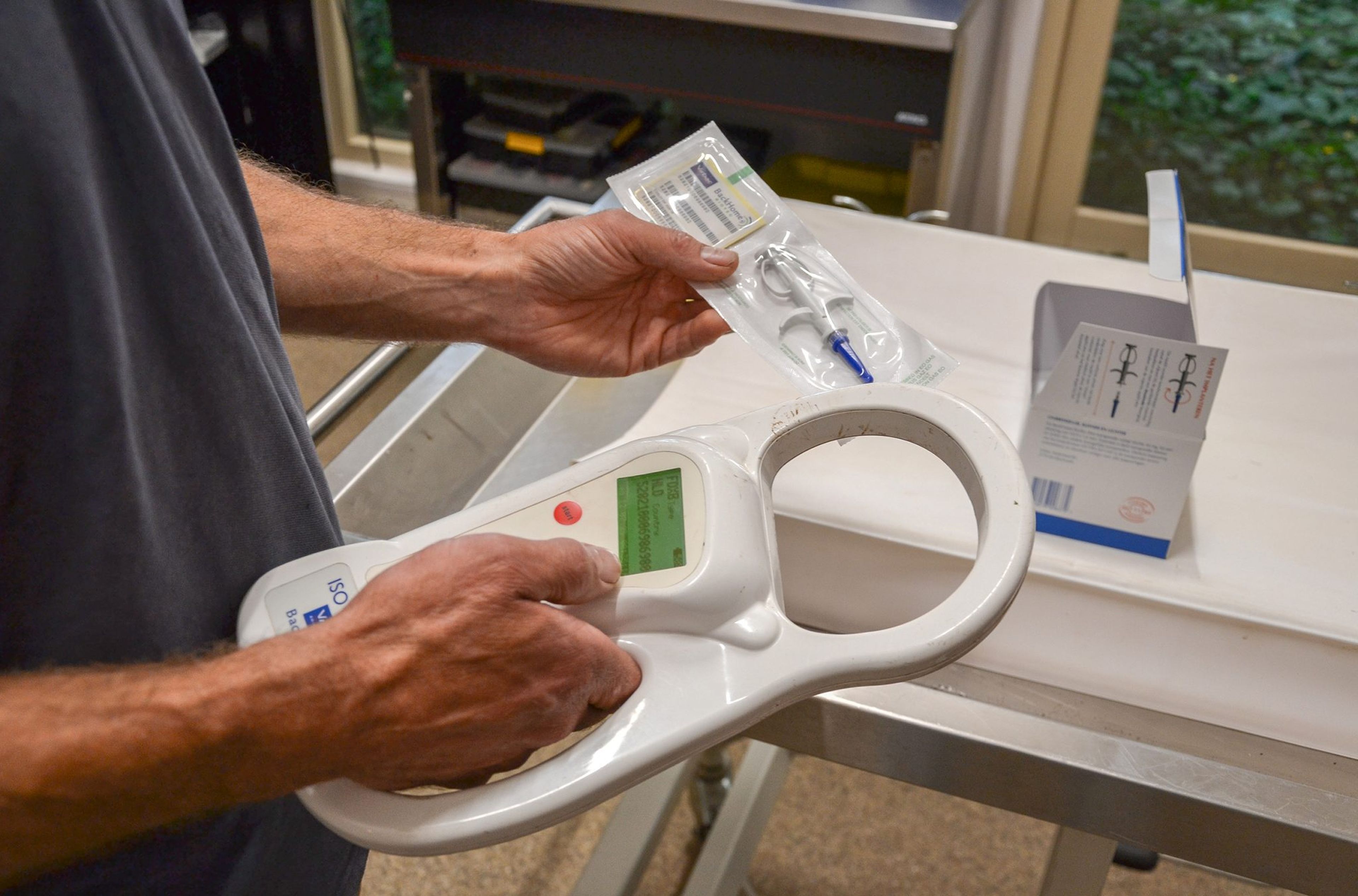 Die Tierpfleger erkennen die meisten Tiere selbst, sogar beim Namen. Bei Tieren wie den Piranhas ist das natürlich etwas anders, aber die meisten Tiere kann man individuell erkennen. Um die Sache zu erleichtern, hat jedes Tier einen Chip, genau wie Hunde und Katzen. Die Chipnummer ist mit allen Informationen über das Tier verknüpft. Allerdings ist der Ort, an dem der Chip angebracht ist, oft ein anderer als bei Haustieren, da die Vorschriften der europäischen Datenbank beachtet werden müssen. Hier wird festgehalten, wo sich der Chip befinden muss. Das Foto zeigt das Gerät, mit dem die Chips ausgelesen werden.