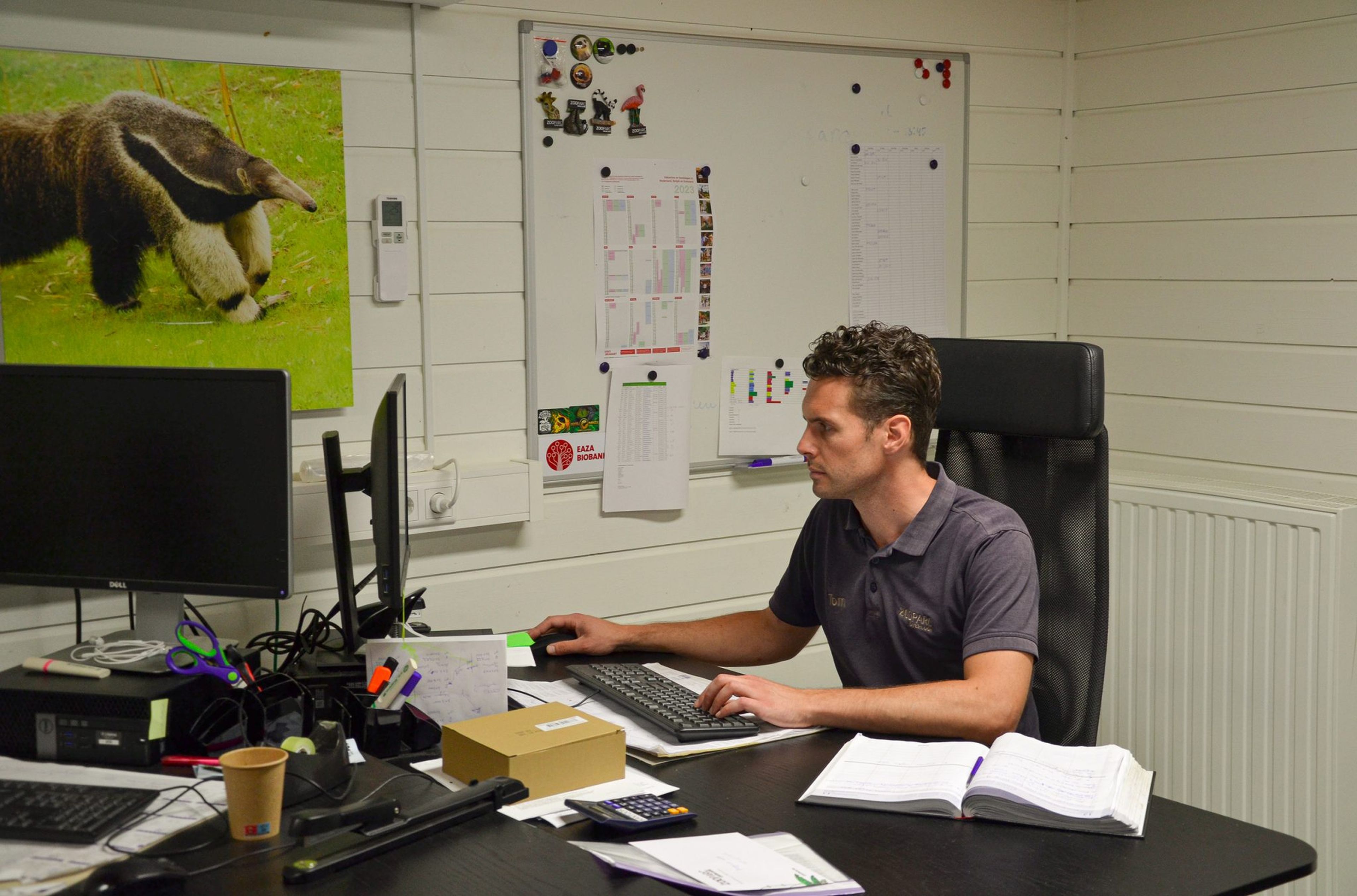 Im ZooParc gibt es eine Küche mit Gemüse, Obst und Trockenfutter und eine separate Küche, in der alle Fleisch- und Fischgerichte zubereitet werden. Tom kümmert sich um die Diät und die Ernährung der verschiedenen Tiere. Zum Beispiel passt er das Futter an, wenn ein Jungtier geboren wird, wenn ein Tier zu alt für ein bestimmtes Futter ist, wenn ein Tier medizinische Beschwerden hat oder wenn ein Tier gerade kastriert wurde usw. Das Futter wird also an die Lebensumstände der Tiere angepasst! Außerdem wird das gesamte Futter sehr genau abgewogen.