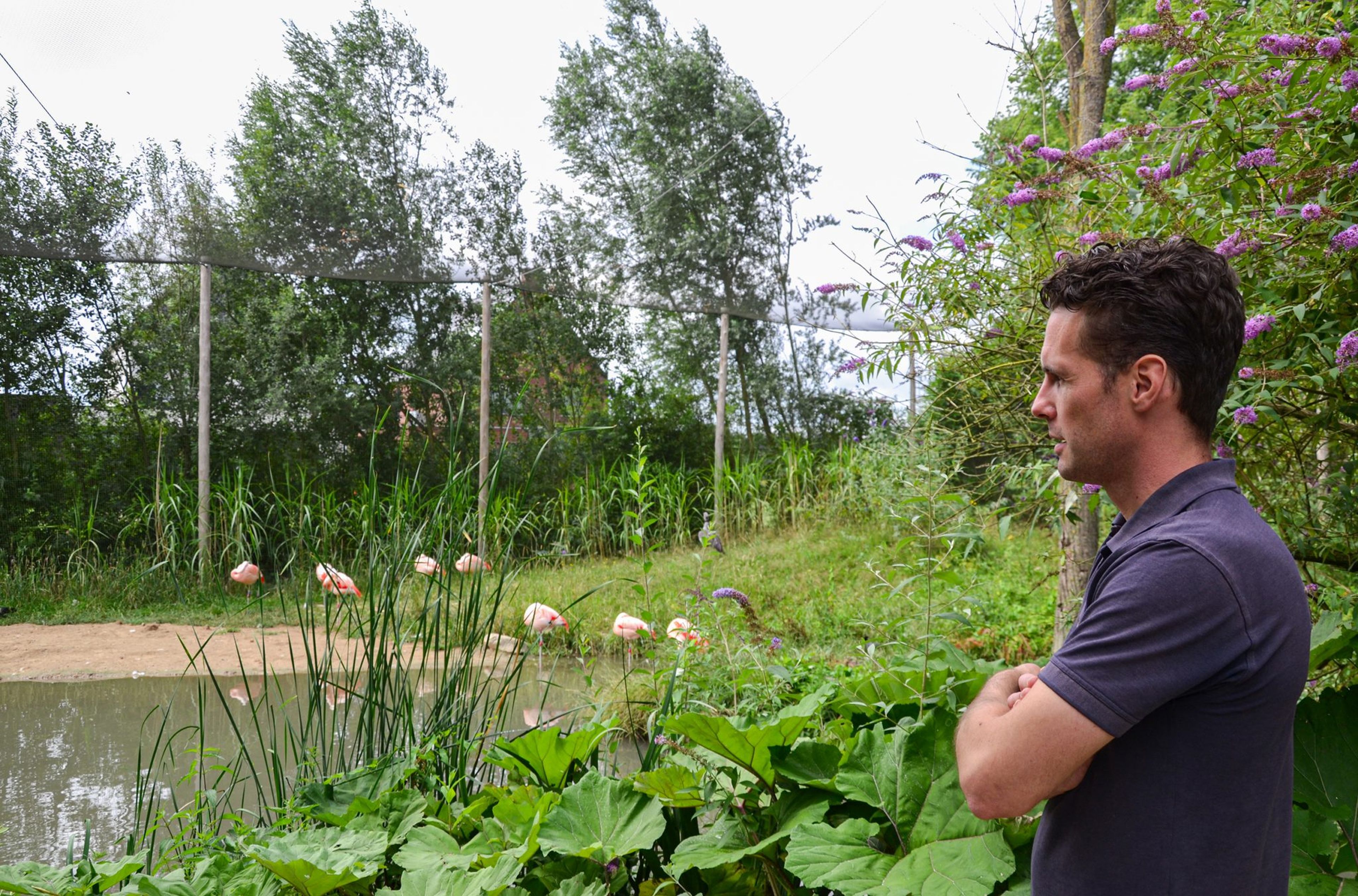 "Die Vielfalt! Kein Tag ist wie der andere!", sagt Tom. Abgesehen davon gibt es im ZooParc auch bestimmte Dinge, die die Arbeit so angenehm machen. Das Expeditionsgebiet 'Outback' ist seiner Meinung nach eines der schönsten Gebiete im ZooParc, weil die Tiere dort frei herumlaufen und sich amüsieren können. Eines seiner Lieblingstiere ist der Flamingo, über den er während seines Studiums geforscht hat und daher viel weiß. Er hatte auch die Möglichkeit, spezielle Projekte im Park durchzuführen, aber das beste Projekt war der Bau eines Biotops für die Tiere in Madidi. Aber was ist ein Biotop? Ein Biotop ist der simulierte natürliche Lebensraum von Tieren, wie sie in freier Wildbahn leben würden. Zu diesem Zweck recherchierte er, welche Pflanzen am besten zu den in Madidi lebenden Tierarten passen. Fast alle Pflanzen in Madidi stammen tatsächlich aus Mittel- und Südamerika!