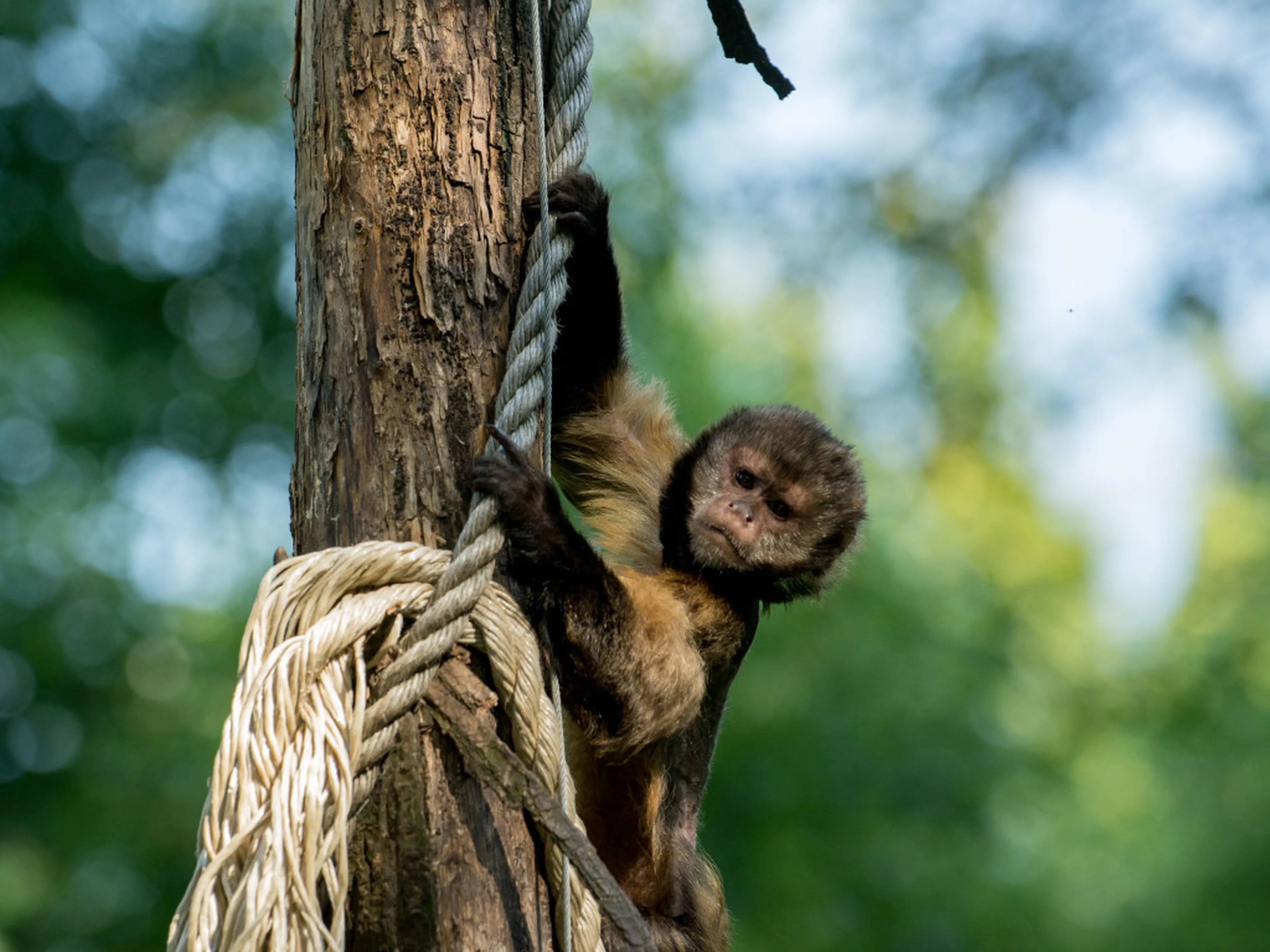 "Geelborst kapucijnapen horen bij de grijpstaartapen. Deze apen gebruiken hun staart als een soort vijfde hand."
