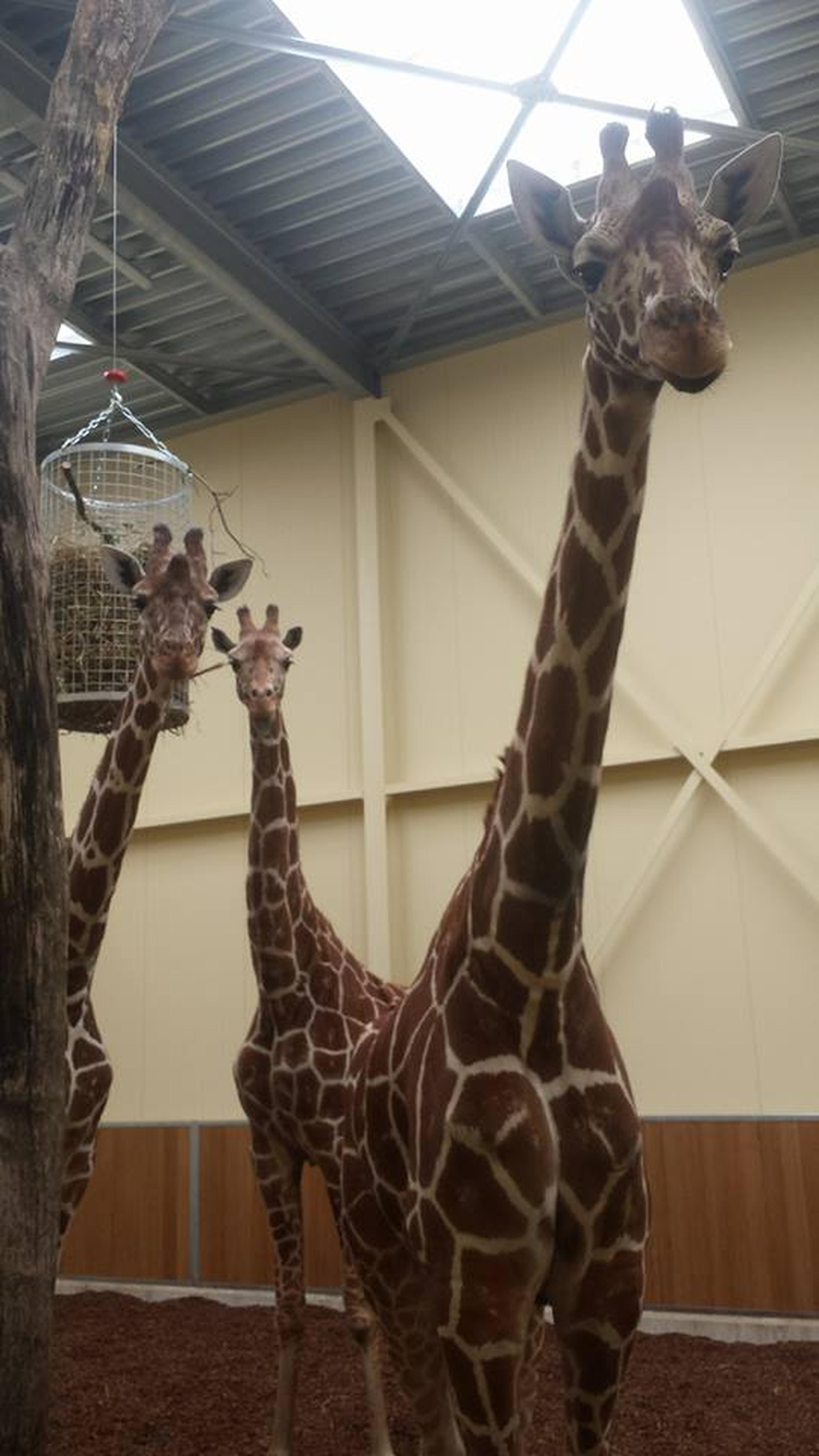 The arrival of net giraffes and Brazzamer cats to ZooParc Overloon was festively celebrated this afternoon during the opening of the new combination enclosure. Three giraffes and four Brazzamer cats together share a spacious plain and an African-themed indoor enclosure in the Ngorongoro area. It is unique for these animals to share an enclosure together. Not only is this fun for visitors to see, but such an enclosure also provides positive behavioral enrichment for the animals.