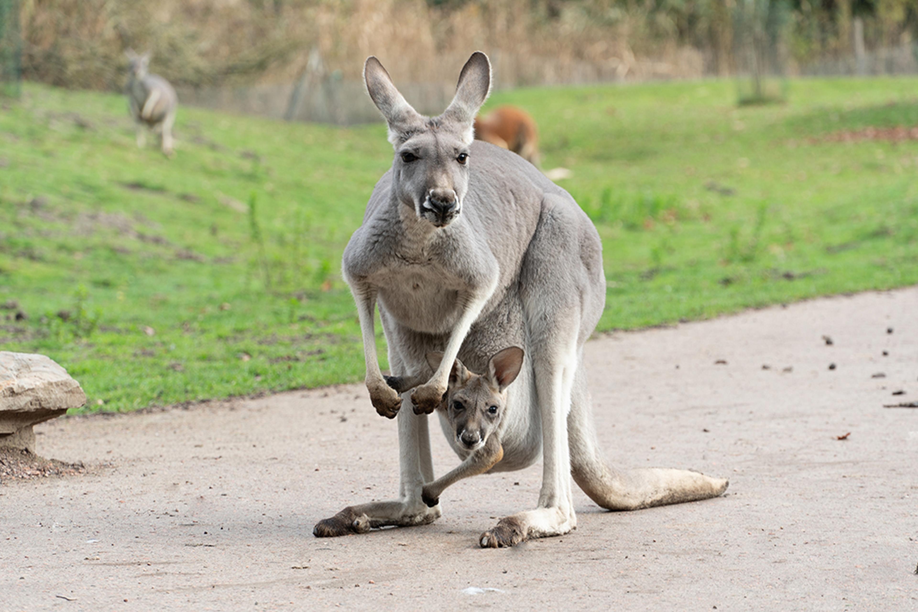 In the pouches of three red giant kangaroos, "joeys" were recently spotted: a young that is now a few months old, but has not yet emerged from the pouch. "Newborn kangaroos are very small. They crawl into the pouch immediately after birth to continue growing there. Only after a few months do they stick their heads out of the pouch and we know they are there. It then takes a while before the young come out of the pouch," Van den Heuvel said.