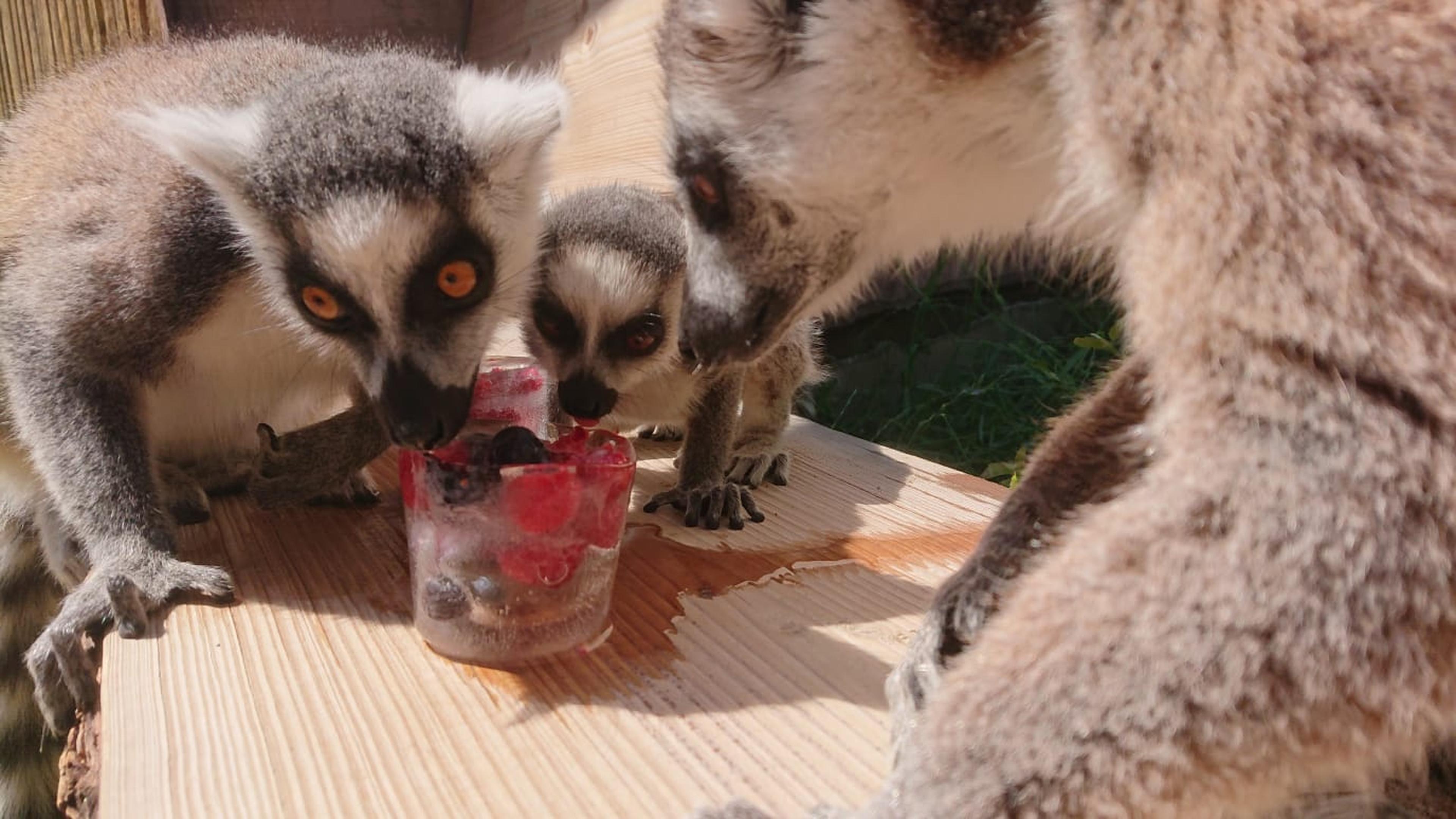 Niet alleen mensen verlangen met dit warme weer naar verkoeling, ook de dieren kunnen wel wat kouds gebruiken. Daarom werden onder andere de ringstaartmaki's, slingerapen en otters in ZooParc Overloon getrakteerd op speciale fruit-ijsjes.