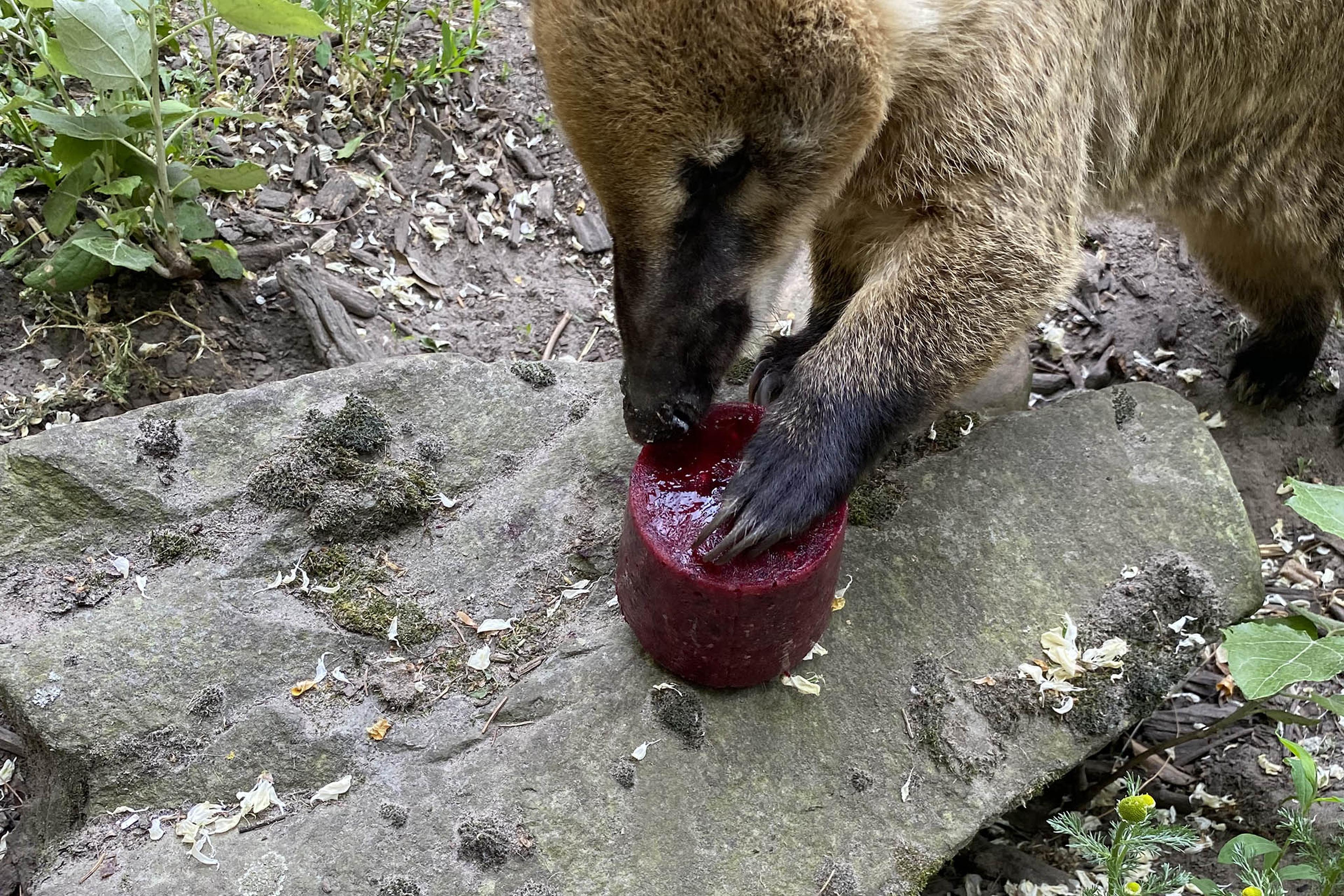 Tijdens deze warme dagen wordt er voor voldoende verkoeling gezorgd voor de dieren in ZooParc Overloon. De Zuid-Amerikaanse tapirs, neusberen, slingerapen en doodshoofdapen genieten van een lekker verfrissend fruithapje.